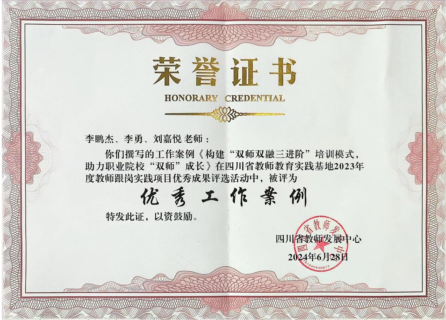 7月3日,四川省教师发展中心举办了首批省级教师教育实践基地“教师跟岗实践项目”优秀成果展示活动,开元官网康复学院副院长李鹏杰作为高职院校唯一代表上台发言展示,《构建“双师双融三进阶”培训模式,助力职业院校“双师”成长》工作案例也被印发成册在全省推广。