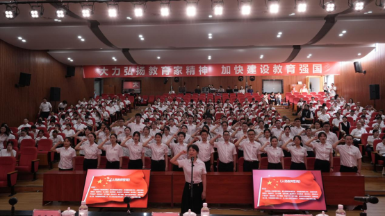 会上,四川省“四有”好老师、马克思主义学院秦丹副教授以“弘扬教育家精神”为题作了感悟分享。学校和附属医院领导为“四有”好老师和“三十年”教龄教师代表颁发荣誉证书。“三十年”教龄教师代表、康复学院肖骞教授带领全体新教师进行教师宣誓仪式。