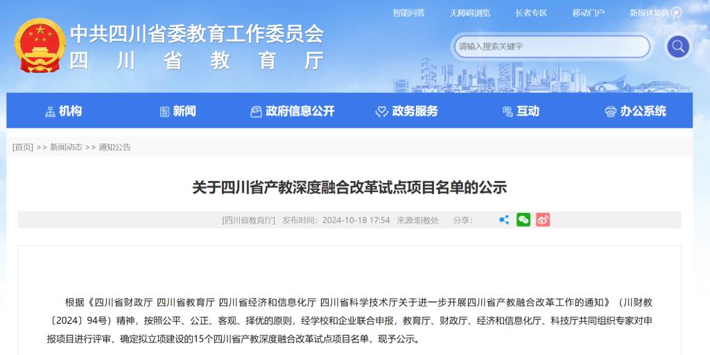 10月18日,四川省教育厅公示了“四川省产教深度融合改革试点项目拟立项名单”,在市委市政府的领导下,在市财政局、市教体局、市科技局、市经信局等部门的大力支持下,由学校与迈克生物股份有限公司联合申报的“体外诊断高性能装备产教科深度融合”项目,经过激烈角逐,从众多申报项目中突出重围,以高职院校排名第二的好成绩,成功入围拟立项名单。