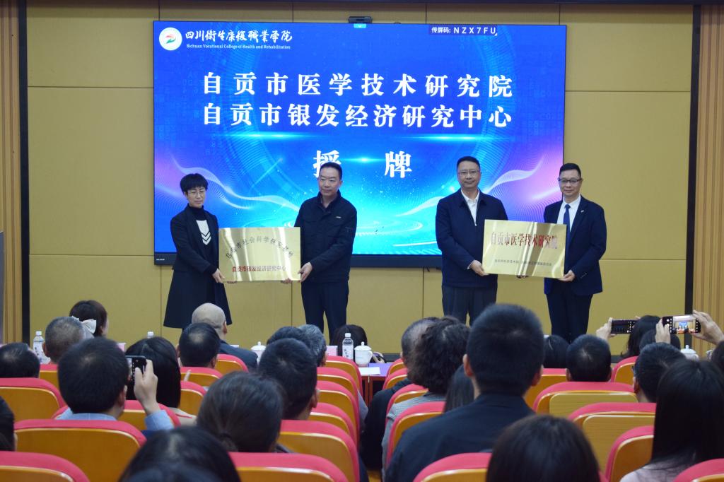 随后,市科技局党组书记、局长朱柱,市民政局机关党委书记李家军为自贡市医学技术研究院与自贡市银发经济研究中心正式授牌。