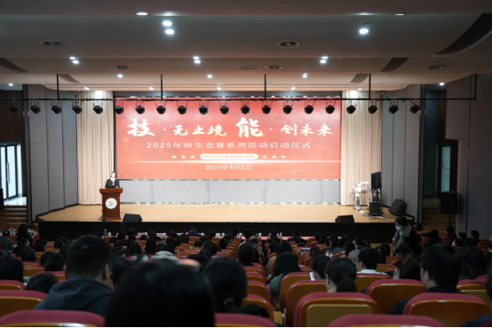 4月2日下午,开元官网在3-C209举办“技·无止境,能·创未来”2025年师生竞赛系列活动启动仪式。校领导、全体教职工、企业代表及学生代表齐聚一堂,共同见证这一重要时刻。启动仪式由学校副校长李琴主持。