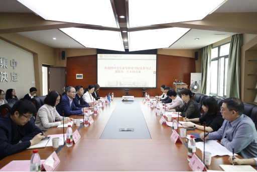 (黄晓春书记一行与重庆医药高等专科学校党委书记刘永生一行开展座谈交流)