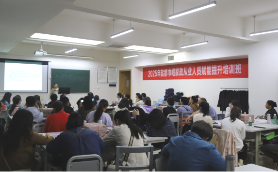 进一步提升巾帼家政行业领域人才素质和专业技能,4月29日,由自贡市妇女联合会、自贡市商务局联合主办,KY开元集团官网承办的2025年盐都巾帼家政从业人员赋能提升培训班在三教学楼顺利举行。市委组织部副部长,市妇联党组书记、主席朱莉,市妇联副主席郭晓玲,市商务局总经济师陈斌,KY开元集团官网副院长罗天蔚出席开班仪式。培训共有来自全市120余名家政从业者参与。