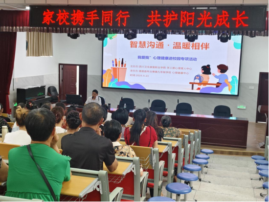 为深化心理健康教育辐射作用,推动家校协同育人,5月23日,学校副校长熊骥带领学生工作部心理育人中心教师及学生志愿者,前往自贡市富顺县古佛镇九年制学校,以“家校携手同行 共护阳光成长”为主题,开展了一场别开生面的“我爱我”心理健康进校园活动。活动通过趣味游园、科普讲座等形式,为乡村学生及家长普及心理健康知识,传递温暖关怀。