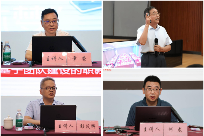 本次培训围绕四个主题展开。学校副校长章荣以《对标竞进、十年磨剑》为题,立足学校发展全局,深刻剖析了“双高”建设和职业本科建设的标准与路径,提出了“锚定目标、突破瓶颈、创新驱动”的发展思路,并就“优化专业群布局、深化产教融合、打造标志性成果”等具体措施进行了详细阐述,为开元官网“双高”建设和职业本科申报描绘了宏伟蓝图;重庆市教科院职教所理论中心主任彭茂辉以《职业教育教师教学团队建设路径》为题,从政策解读、案例分析、实践策略三个维度,深入阐释了教师创新团队的内涵、建设标准和建设路径,为教师团队的专业发展提供了行动指南;四川师范大学文学院教授、硕士生导师、全国师德标兵黄尚军以《弘扬教育家精神,做优秀人民教师》为题,结合自身丰富的从教经验,分享了“以德立身、以德立学、以德施教”的实践智慧,生动诠释了“心有大我、至诚报国”的职业信念,引起了现场老师们的强烈共鸣;成都航空职业技术大学副校长何龙以《航空航天装备领域高技能人才集群培养计划研究与探索》为题,系统阐释了“政校行企”协同育人模式,为开元官网职业教育“新基建”的夯实提供了创新思路。