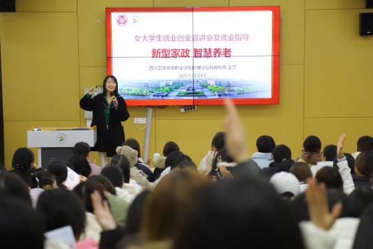 第二阶段为女大学生就业创业系列专题讲座,由四川蒙亚教育咨询有限公司教务主管王莎及学院李静、黄永先、李秋虹主讲。王莎结合行业发展趋势,解析家政与养老服务领域新机遇与新要求;黄永先通过数据和案例展现家政行业就业潜力与发展空间,打破传统认知;李秋虹从职业规划底层逻辑出发,引导同学们明确自身优势,摆脱职业迷茫,树立科学择业观;李静则围绕简历撰写核心要素、面试礼仪、应答策略等进行实操指导。