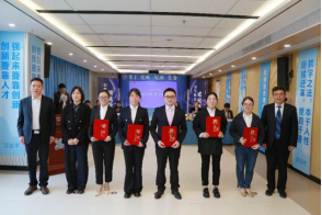 在师生结对环节,校院领导共同为20名学生颁发录取通知书,为20名一对一指导教师颁发"现代学徒制班指导教师"聘书。20对学生与指导教师完成结对,学生向指导教师献花,指导教师向学生赠予学习用品。