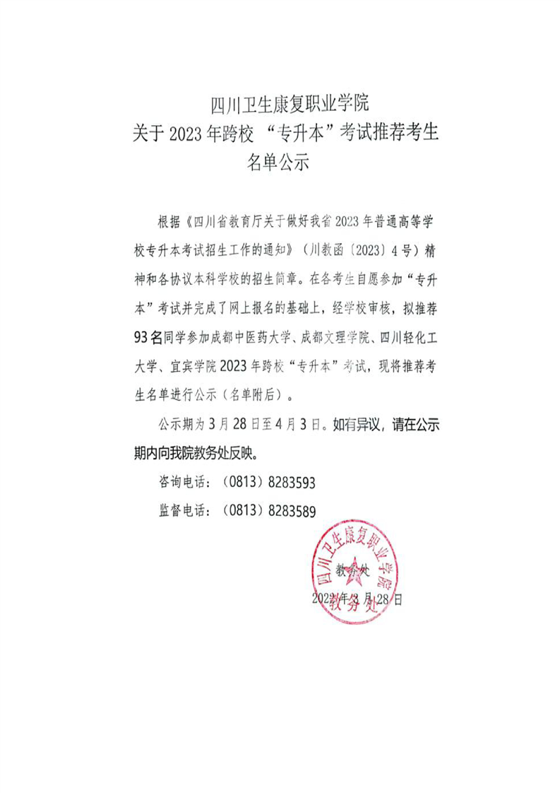 上一条:KY开元集团官网关于2023年专升本推荐考生名单公示(西南医科大学)
