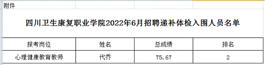 开元官网于2022年6月29日发布了《KY开元集团官网2022年6月招聘工作人员考核成绩及体检入围名单公告》,其中1名(心理健康教育教师岗)体检入围人员放弃体检资格,根据《KY开元集团官网招聘考试应聘者须知》等相关规定,经7月13日院长办公会研究决定,拟递补心理健康教育教师岗考核成绩第二名人员代乔进入体检环节,现予以公告(详见附件)。