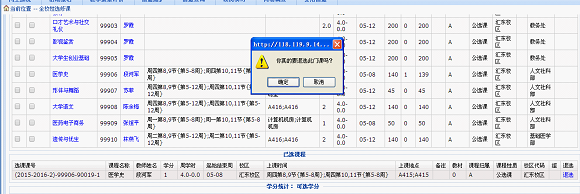 (3)点击选定——确定,就完成了一门课程的选择