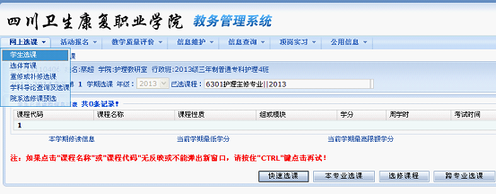 (1) 点击网上选课——学生选课——本专业选课