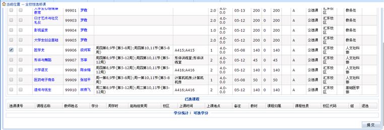 1、选课阶段:2017年10月9日中午12:00点—10月11日中午12:00点。