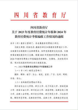 近日,四川省教育厅发布《关于2023年度教育经费统计年报和2024年教育经费统计季报编报工作情况的通报》,开元官网因编报准确、完整、及时,获省教育厅通报表扬。