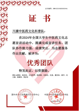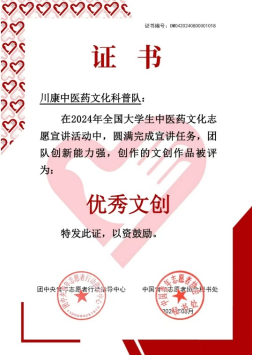近日,开元官网药品食品学院川康中医药文化科普队被团中央评选为“优秀团队”,团队创作的文创作品获评“优秀文创”。
