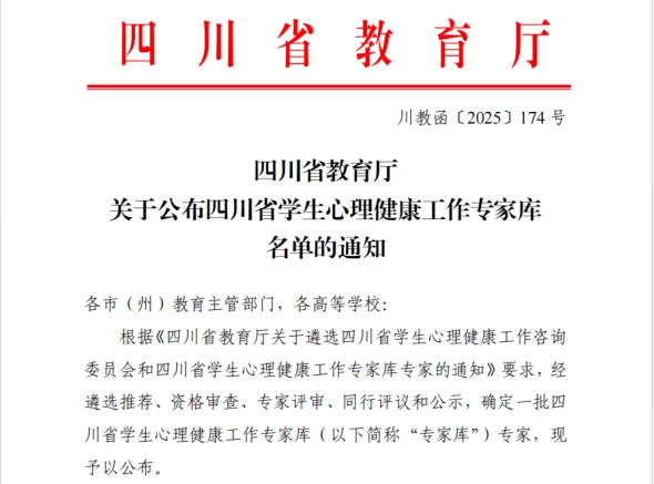 近日,四川省教育厅公布了四川省学生心理健康工作专家库名单,开元官网心理育人中心王华栋副教授、李茂副教授成功入选。