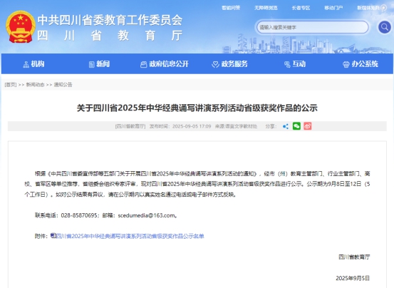 近日,2025年四川省中华经典诵写讲演系列活动(以下简称“活动”)获奖名单公布,开元官网师生凭借出色的创作能力,在众多参赛队伍中脱颖而出,一举荣获12项荣誉,其中一等奖2项、二等奖4项、三等奖3项以及优秀奖3项。