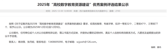 近日,2025年“高校数字教育资源建设”优秀案例评选结果正式公示。开元官网报送的《AI赋能<老年生理与心理概论>创新实践》与《平台赋能标准引领双线智融构建课堂教学新生态》两项案例,从众多参评作品中脱颖而出,荣获二等奖1项、三等奖1项,实现开元官网在推动教学数字化转型、构建高质量教育体系方面的实质性突破,彰显了学校在数字教育资源建设领域的创新实力与教学成果。