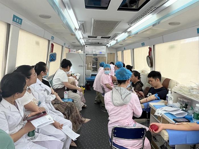 上午8时,新大楼外的献血车旁已排起长队。麻醉科副主任医师兰智直接穿着工作服赶来,已经连续献血多年的他,每次都是第一个到献血现场,伸出手腕,献出爱心。长期在手术室参与危重症患者抢救的他,深知血液对生命的意义。