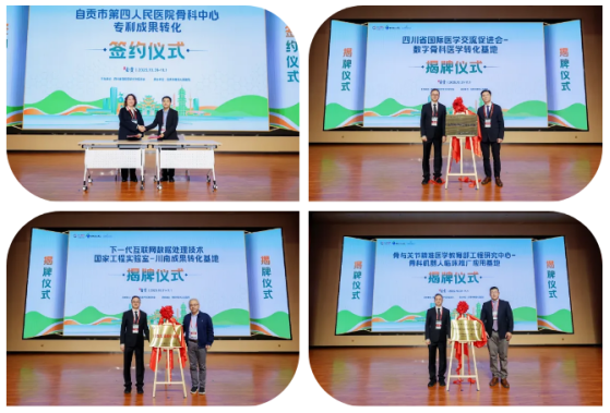 作为重要成果,论坛期间举行了“骨科机器人临床应用推广基地”“电子科技大学下川南成果转化基地”和“数字骨科医学转化基地”三大基地的授牌仪式,旨在构建医工协同与成果转化的完整生态链。同时,市四医院完成了自主研发“骨科定位器”的专利转化签约,标志着其科研创新成果正式走向市场应用。