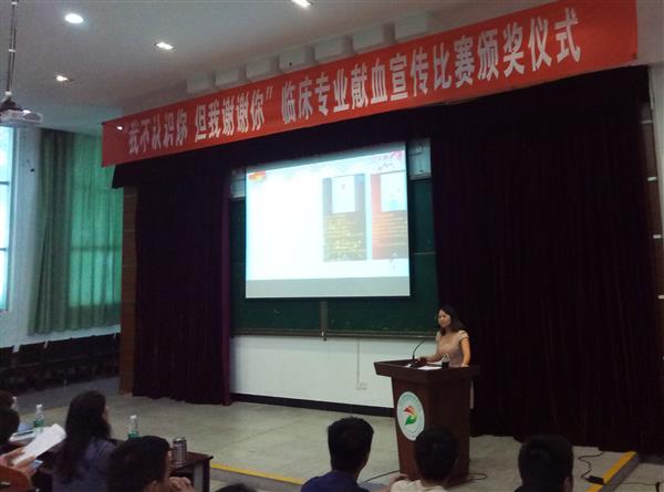 仪式由毛双法主持,她先介绍了参加仪式的各位领导,紧接着介绍了此次宣传比赛的基本情况,为同学们积极宣传无偿献血点赞。