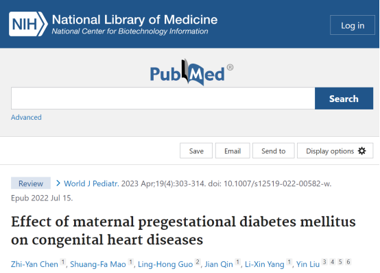 基础医学院陈志颜老师撰写发表论文《Effect of maternal pregestational diabetes mellitus on congenital heart diseases》,发表于SCI外文期刊World Journal of Pediatrics,JCR 1区;中科院1区。