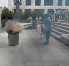 本次培训分为两个阶段:第一阶段为安全知识培训,结束后组织全员考核,90分以上为合格;第二阶段为实地演练,特邀学保卫处翁强、樊芸杰老师现场指导。保卫处提前筹备演练物资,详细讲解消防安全知识及消防器材的正确使用方法。在室外实操环节,教职员工两人一组,分别使用干粉灭火器和灭火毯进行明火扑灭演练。整个演习过程井然有序,参与人员反馈收获显著,有效提升了实战能力。