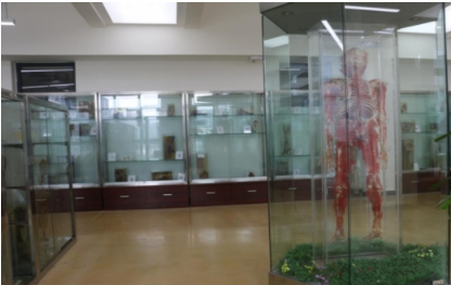 病理实验室:位于5号楼B区,总面积约1200平方米。其中病理陈列室内置标本陈列柜24个,标本约256个,可同时容纳150个学生参观。
