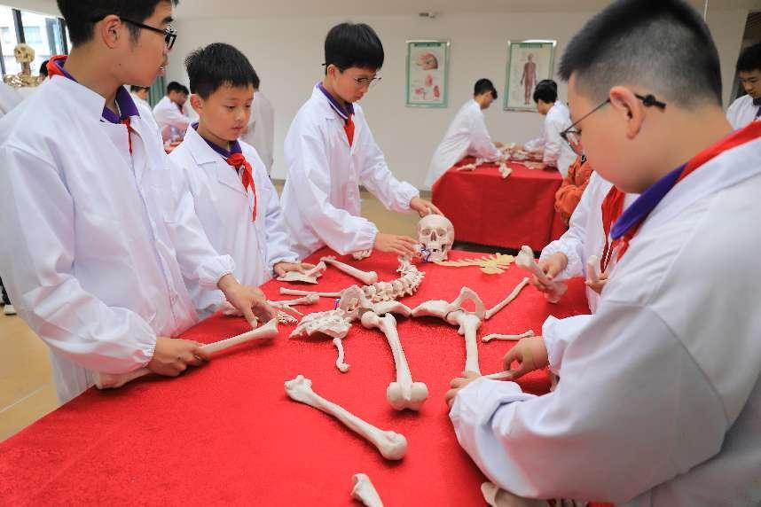 在人体模型组装挑战赛上,同学们通力合作拼接人体骨架模型,让书本里的骨架变成了会讲故事的立体说明书。当最后一块骨归位,一具完整的人体骨架模型让大家恍然大悟:原来,206块骨头就像智慧拼图,凭借卡扣和关节的巧妙连接,搭建起生命的可动雕塑。