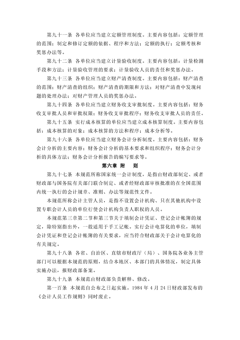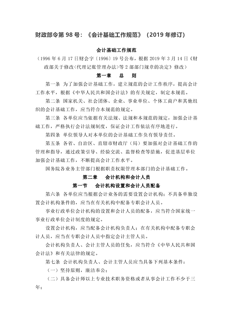 会计基础工作规范(财政部令第98号)