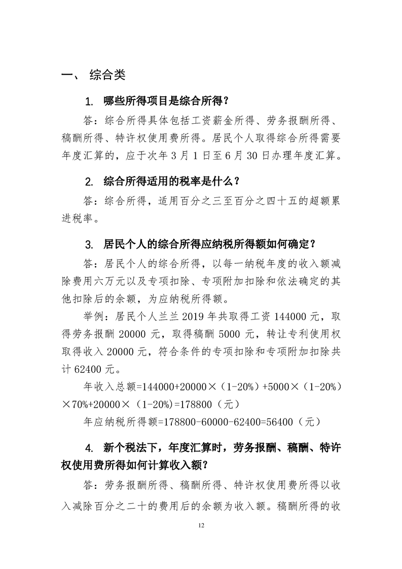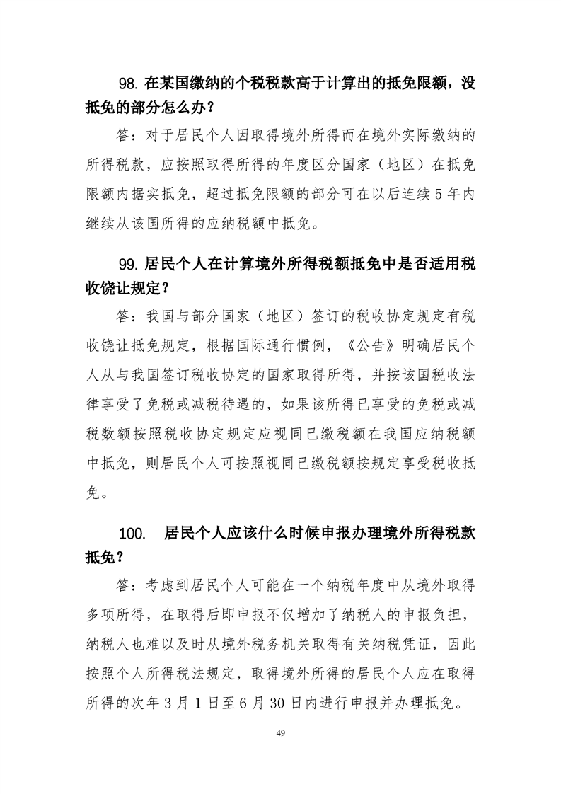 个人所得税综合所得年度汇算政策百问百答
