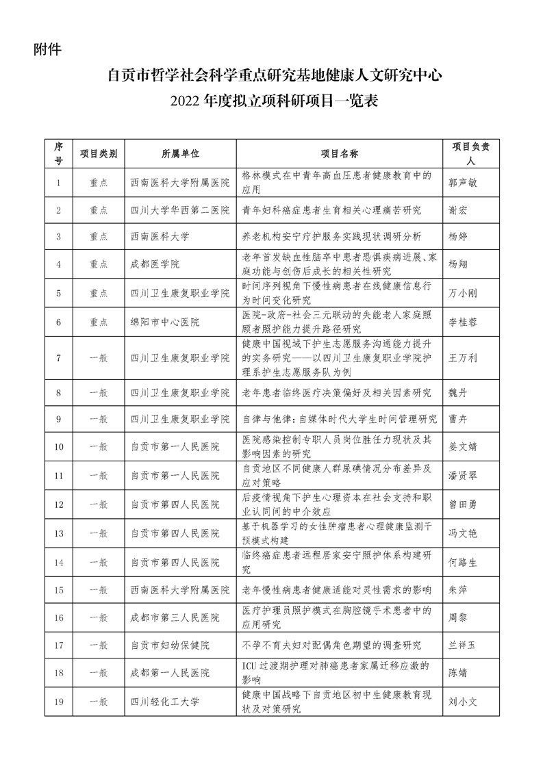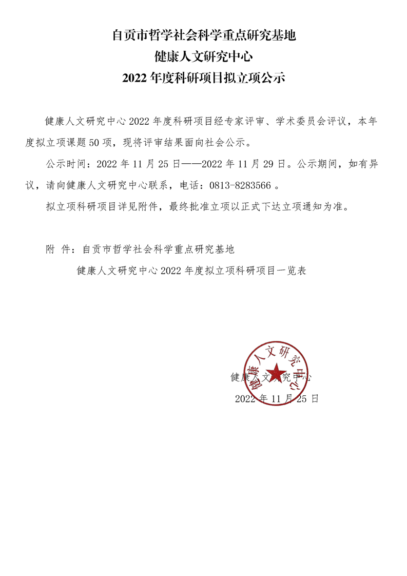 【公示】健康人文研究中心2022年度科研项目拟立项公示
