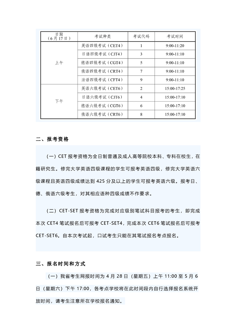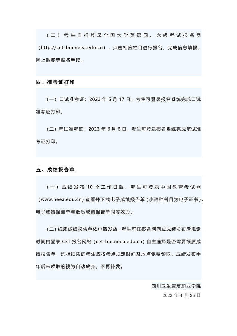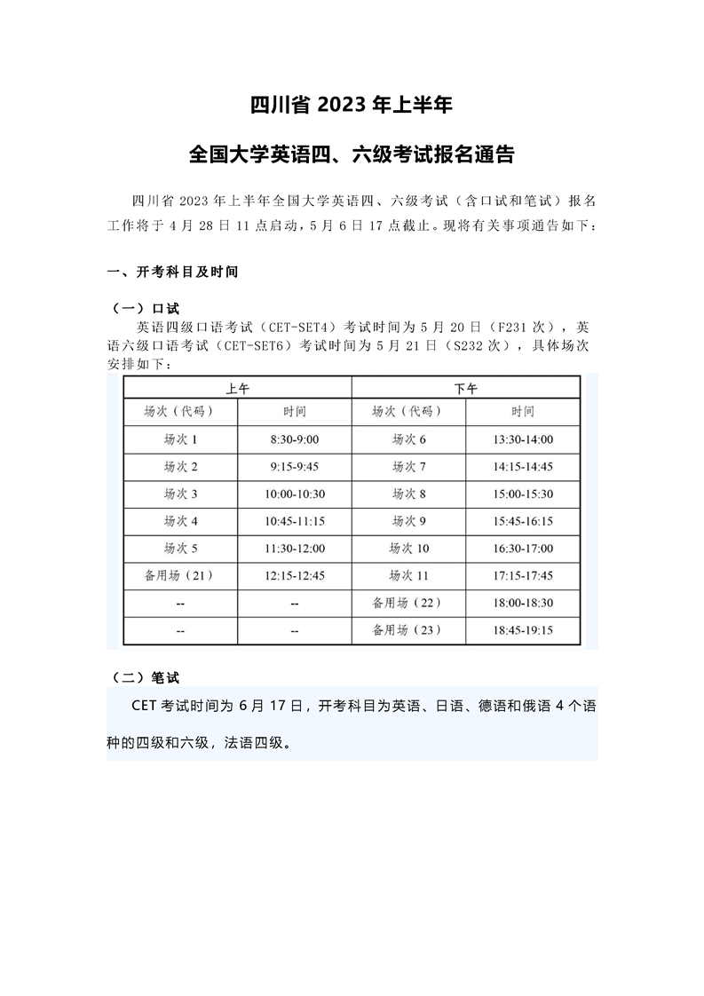 四川省2023年上半年全国大学英语四、六级考试报名通告