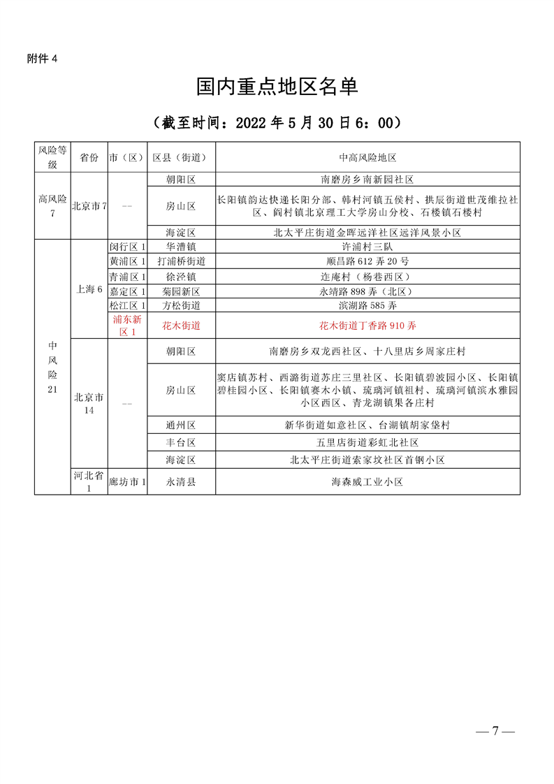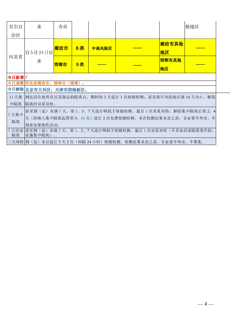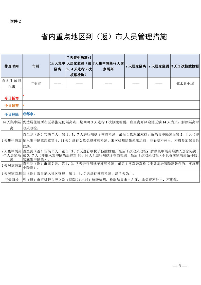 关于国内重点地区名单暨 重点地区到(返)市人员管控措施
