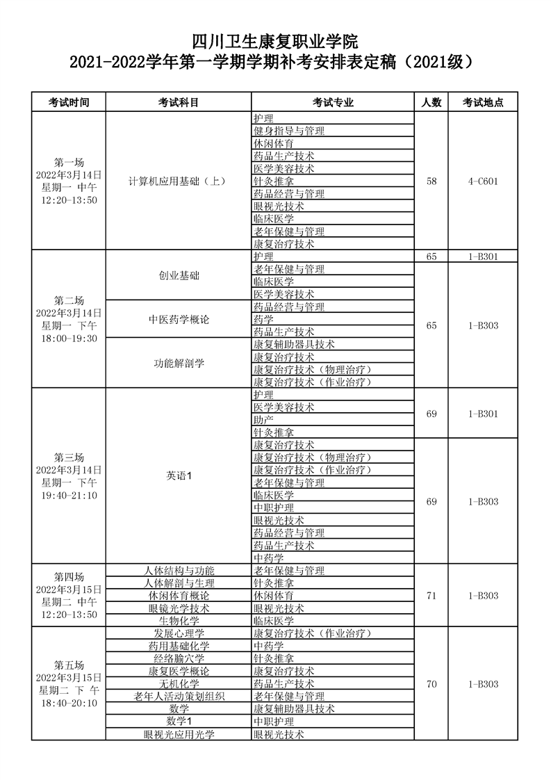 KY开元集团官网2021-2022学年第一学期学期补考安排表定稿(2021级)