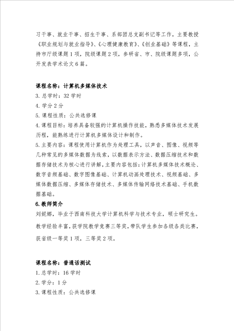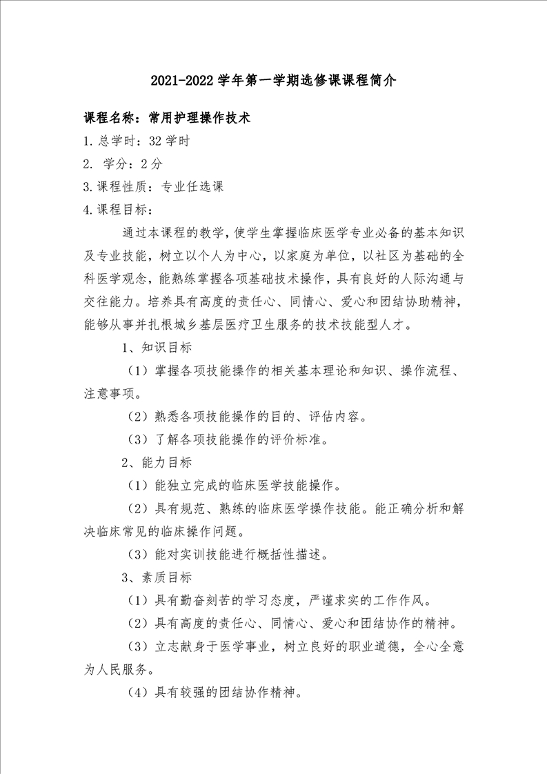 2021-2020学年第一学期选修课课程简介