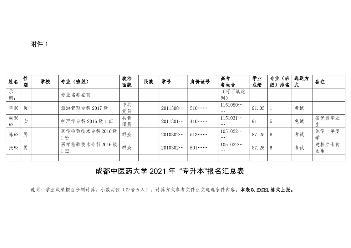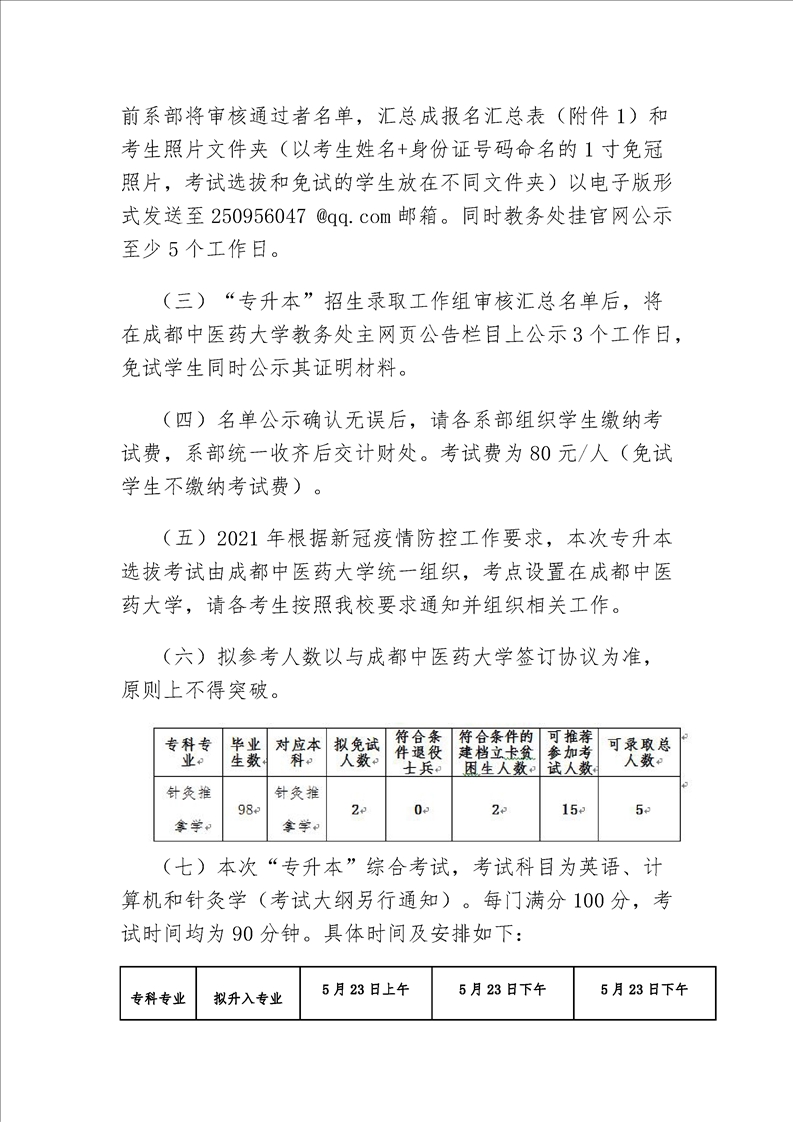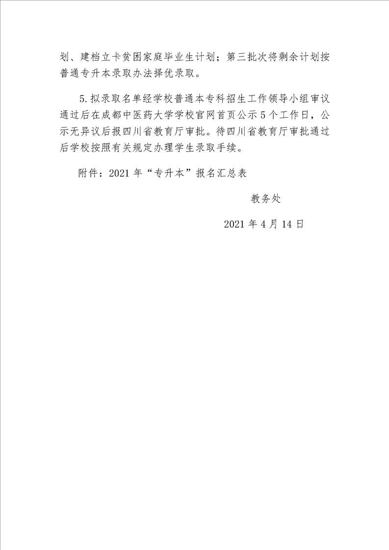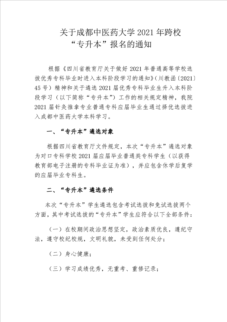 关于成都中医药大学2021年跨校 “专升本”报名的通知