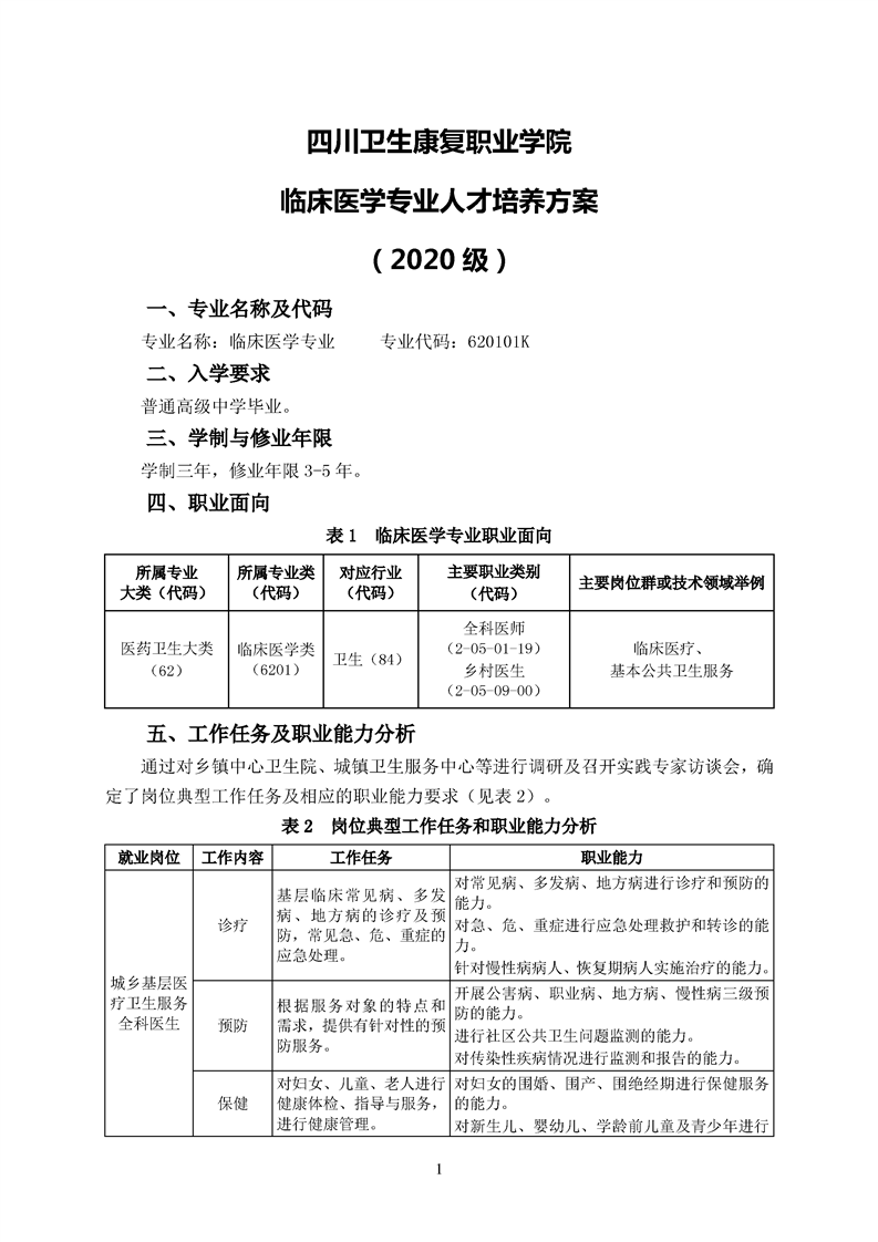 2020级临床医学专业人才培养方案