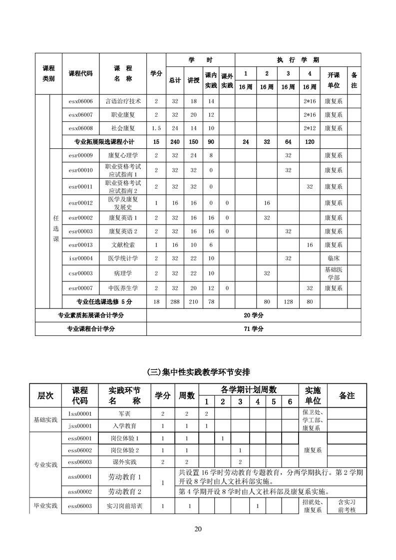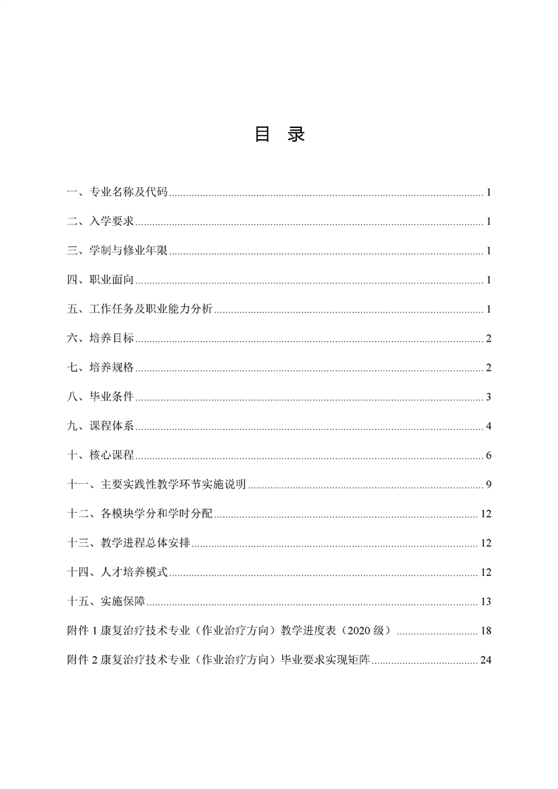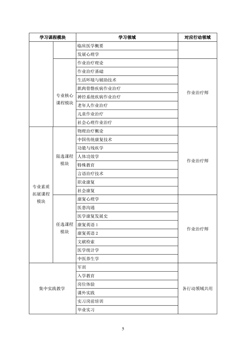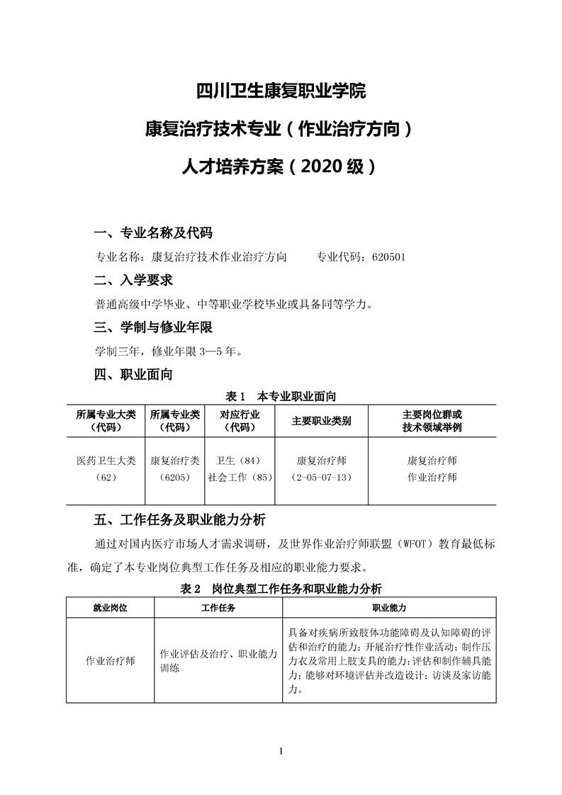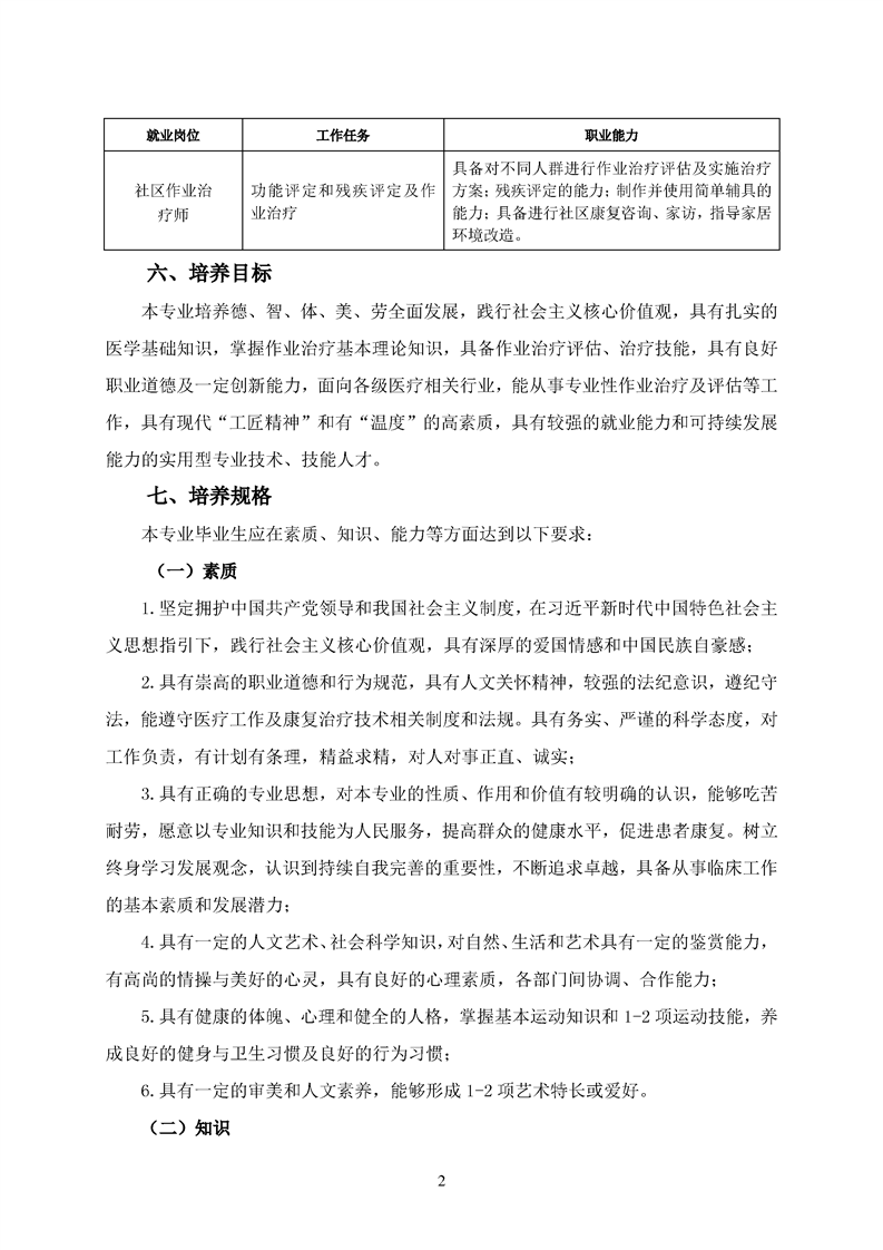 2020级康复治疗技术(作业治疗方向)专业人才培养方案