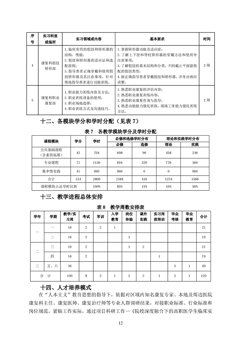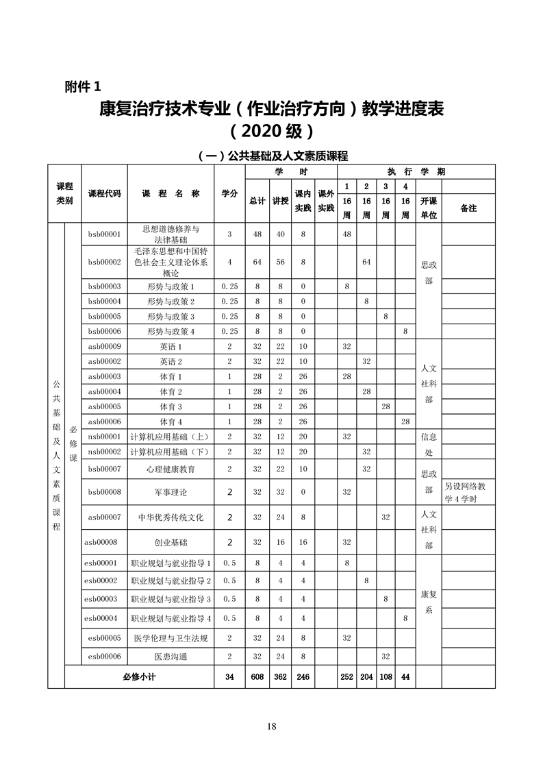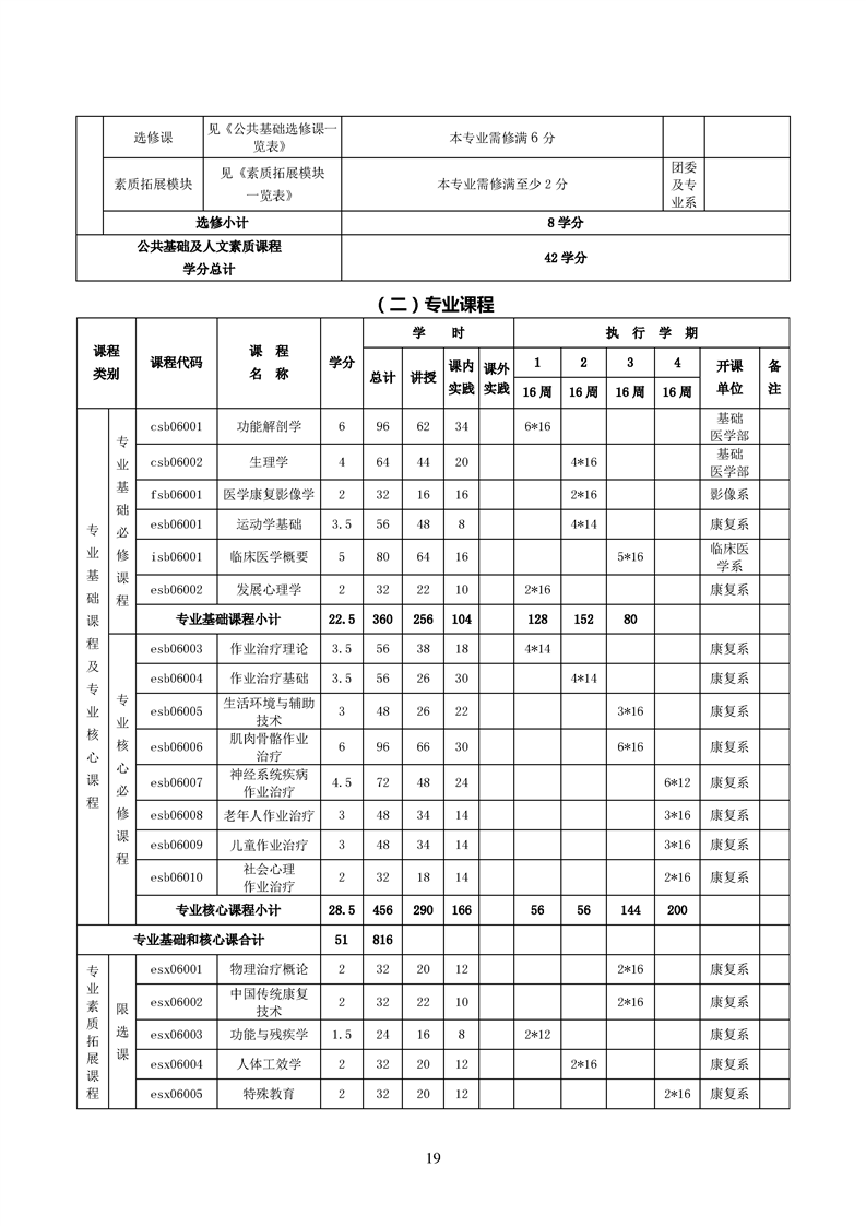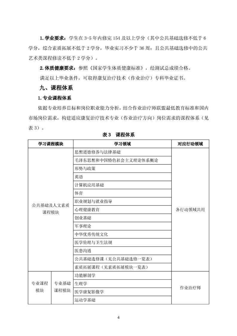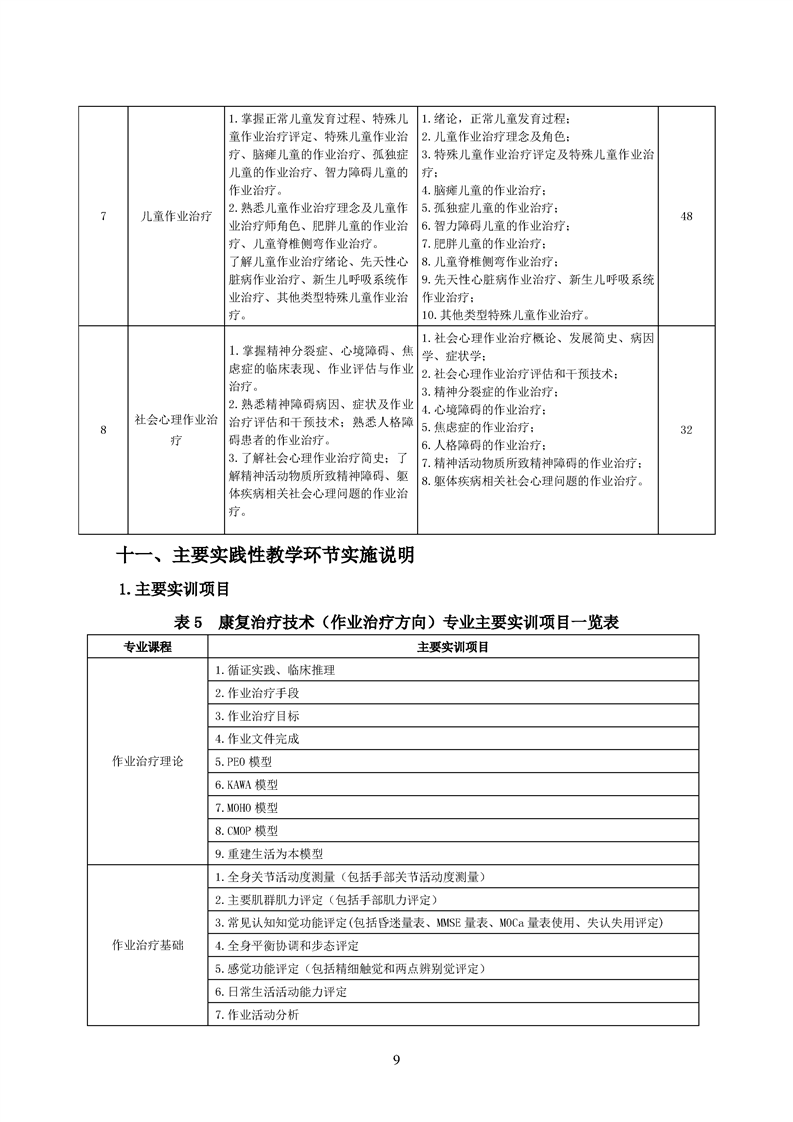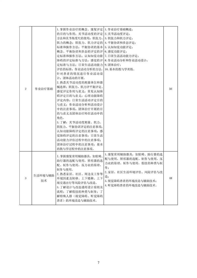 2020级康复治疗技术(作业治疗方向)专业人才培养方案