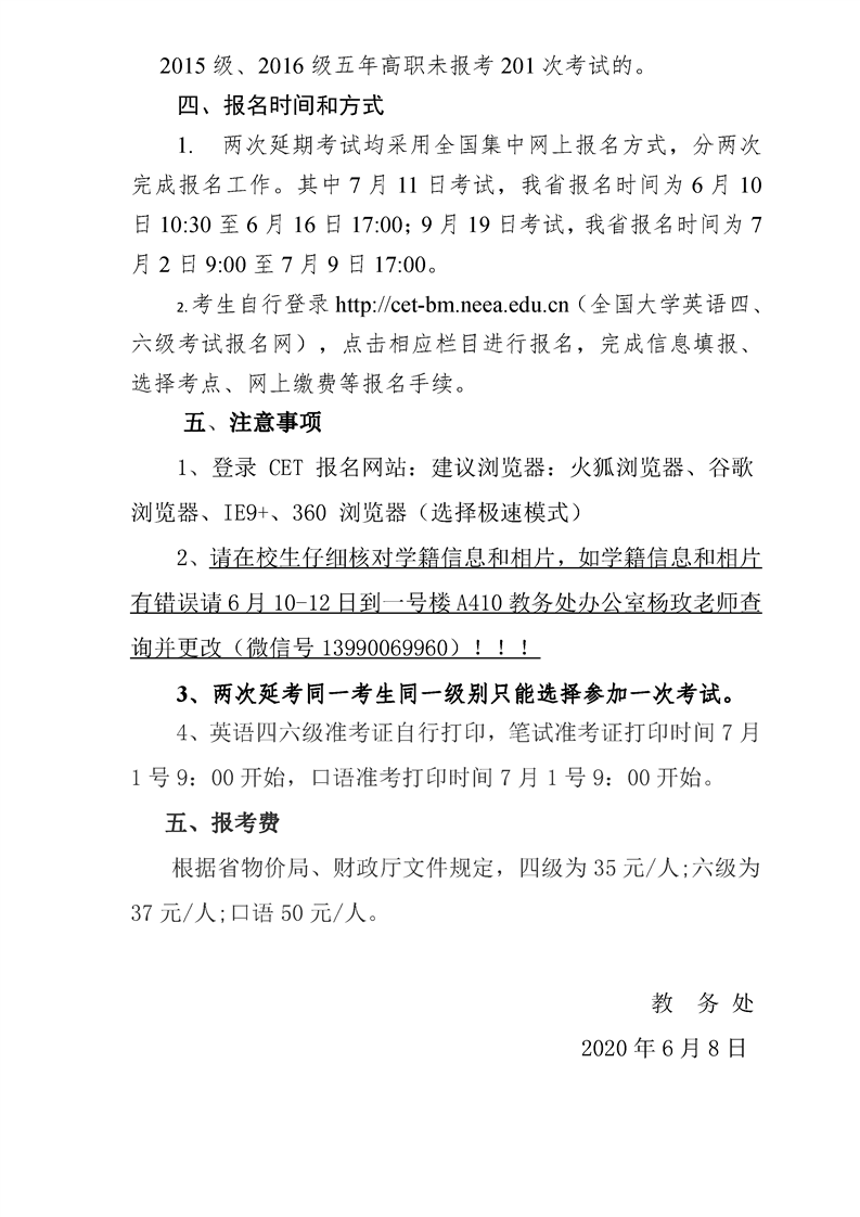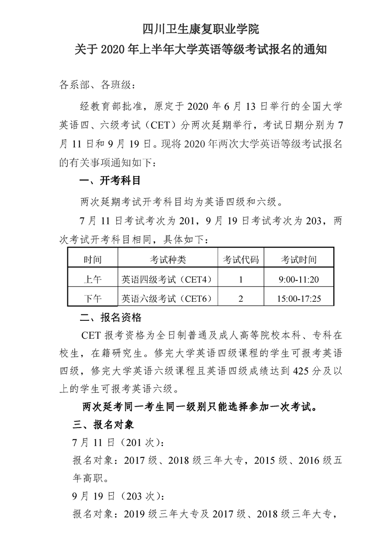 关于2020年上半年大学英语等级考试报名的通知