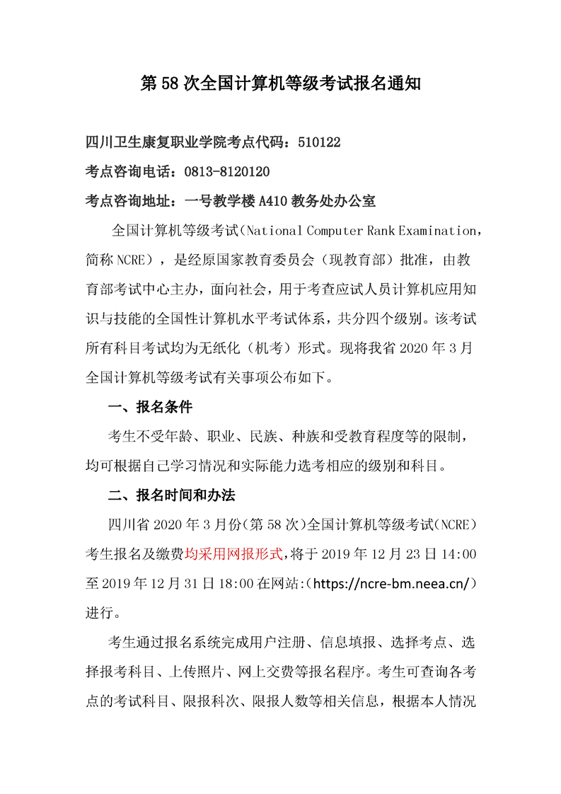 第58次全国计算机等级考试报名通知