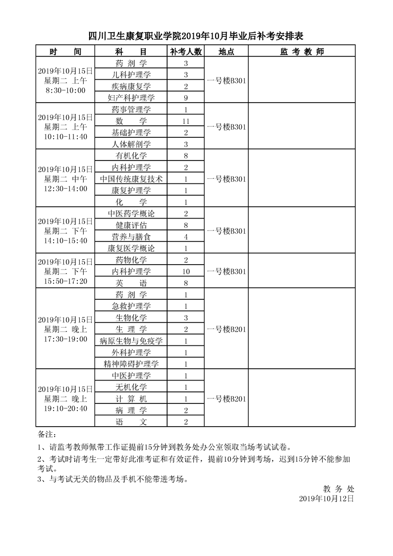 KY开元集团官网2019年10月毕业后补考安排表