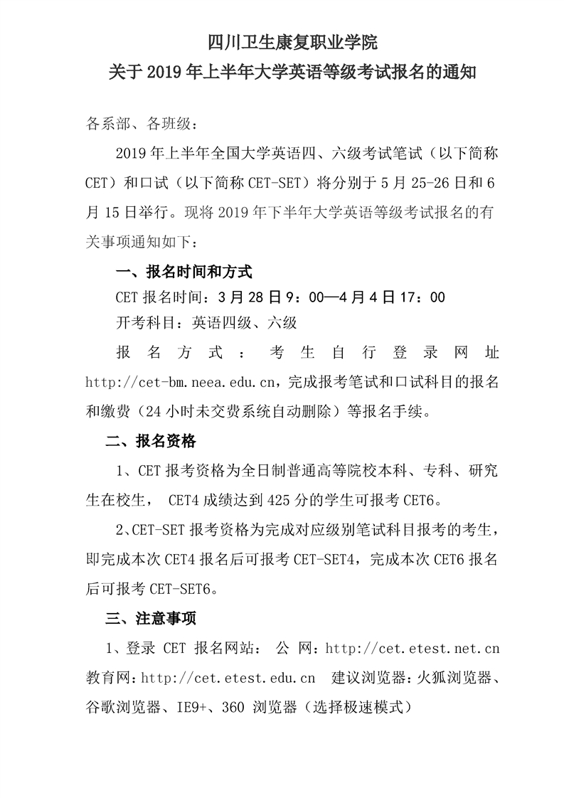KY开元集团官网 关于2019年上半年大学英语等级考试报名的通知