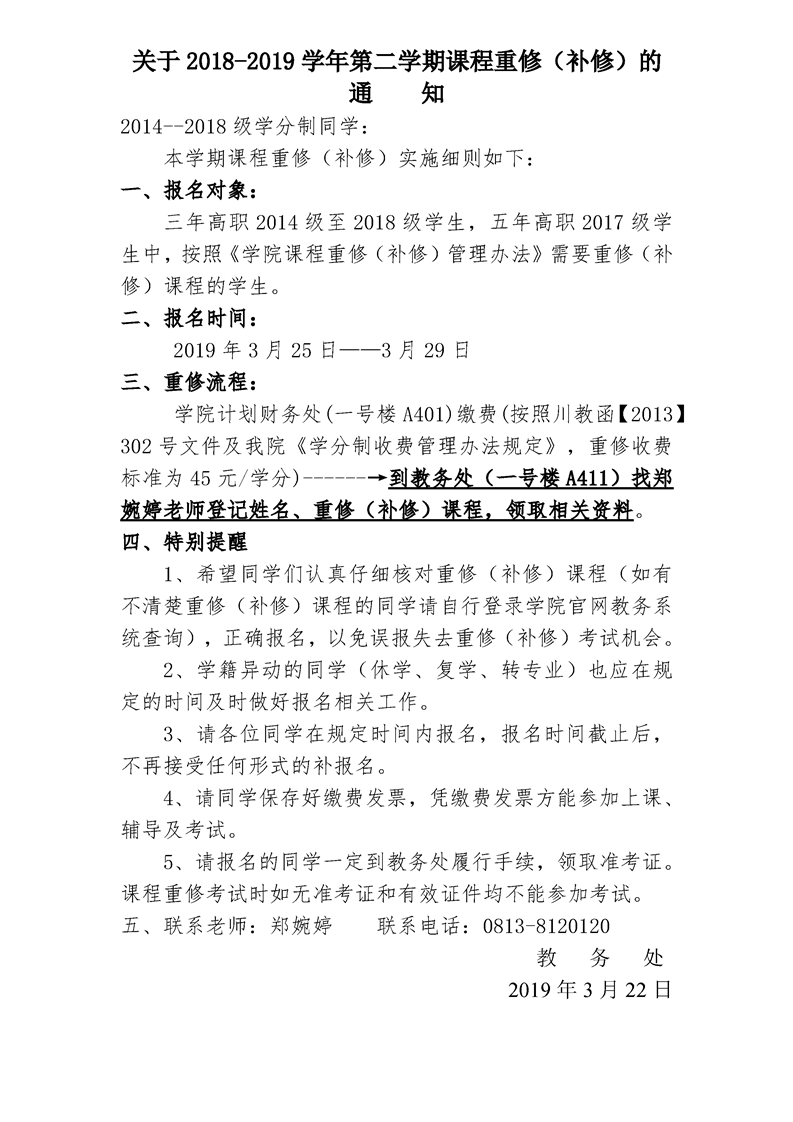 关于2018-2019学年第二学期课程重修(补修)的通知