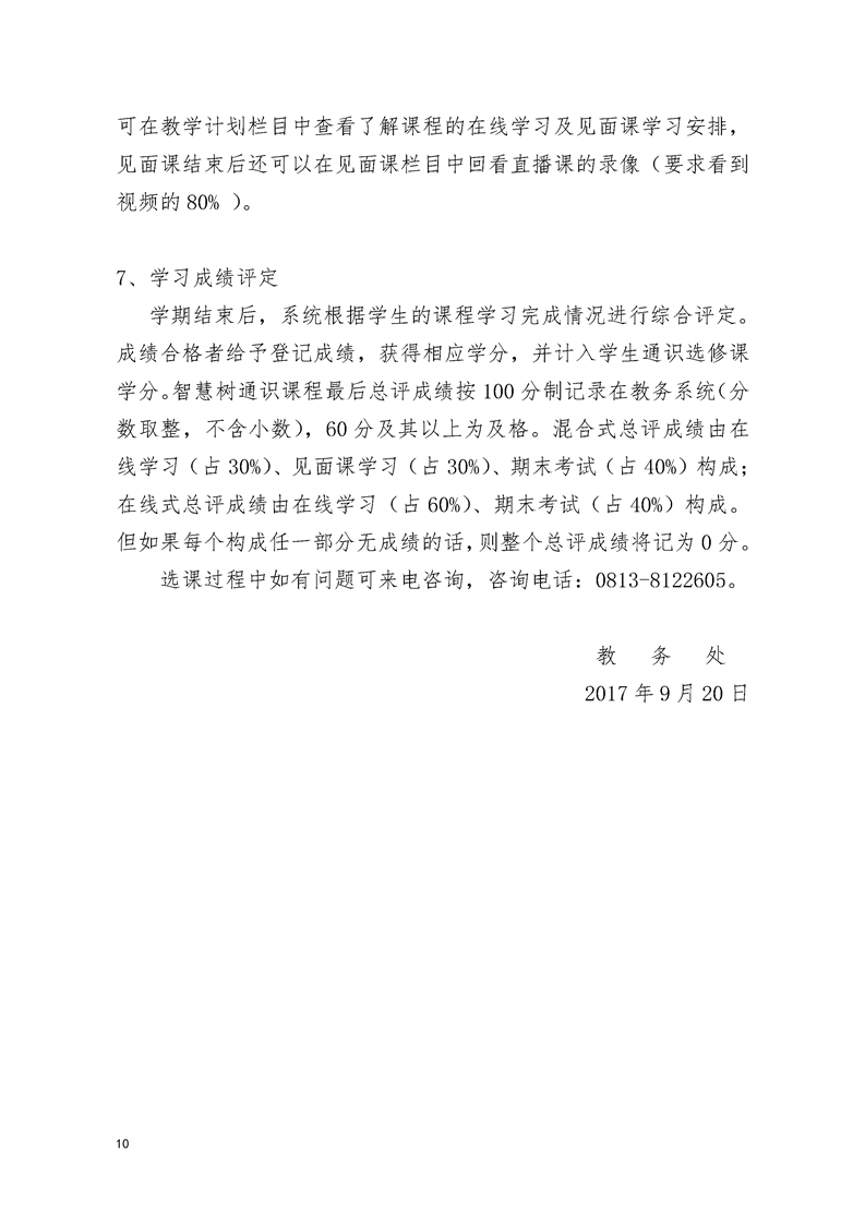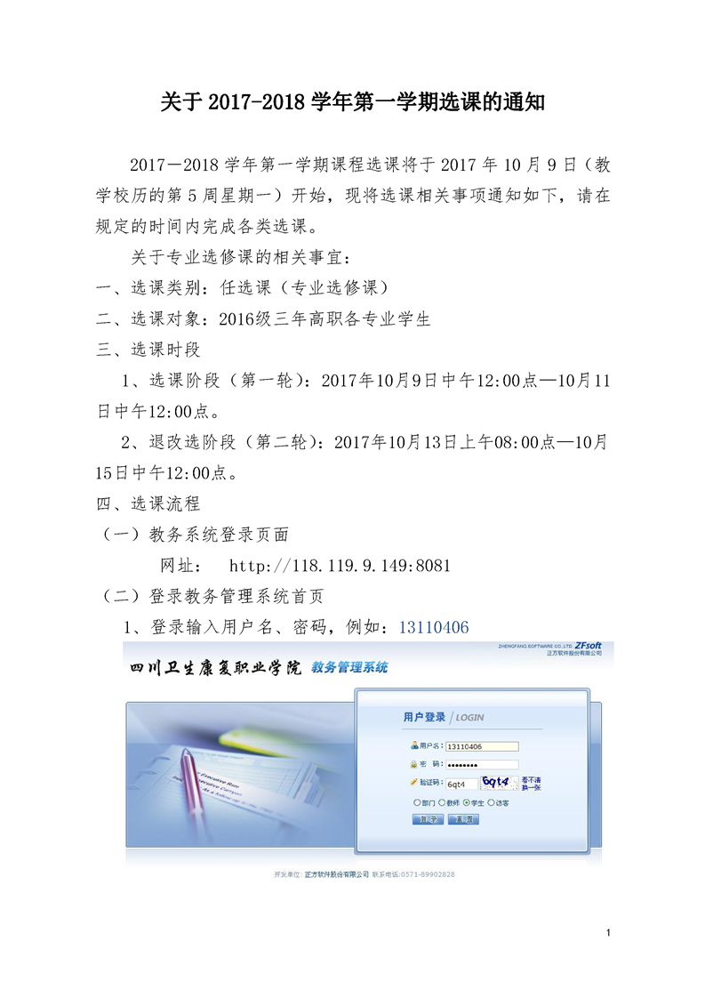 关于2017-2018学年第一学期选课的通知