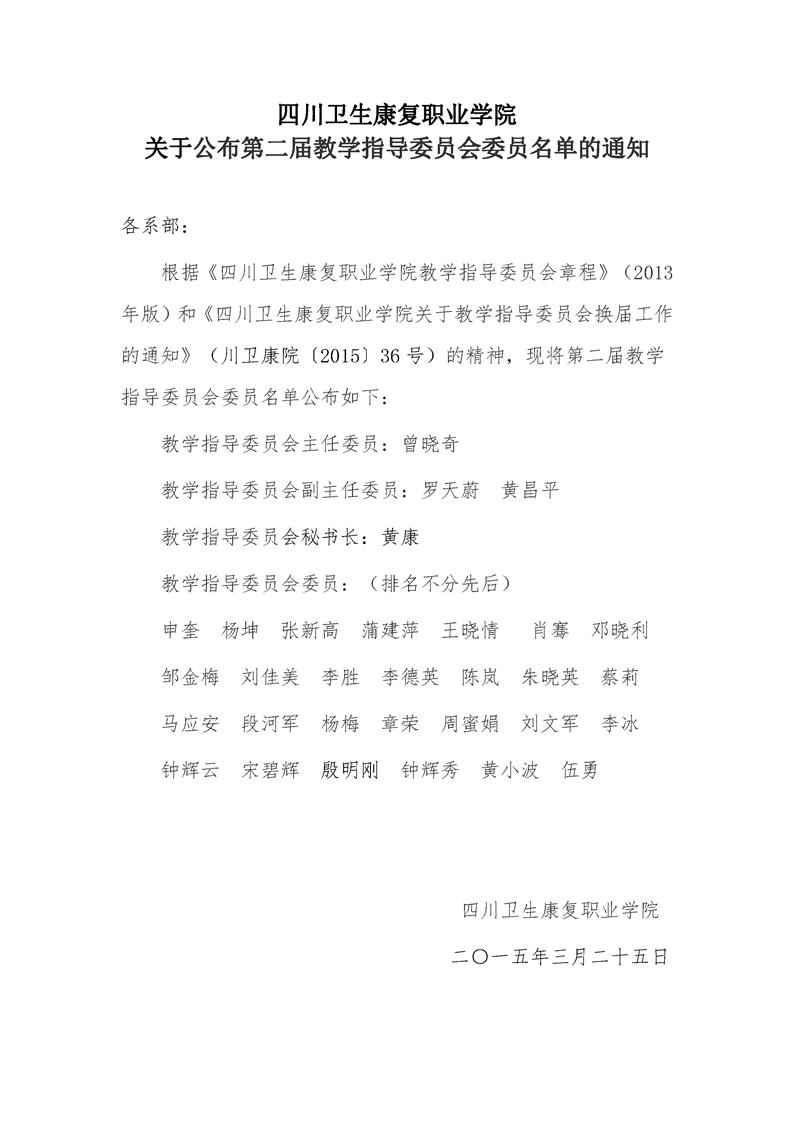 KY开元集团官网 关于公布第二届教学指导委员会委员名单的通知