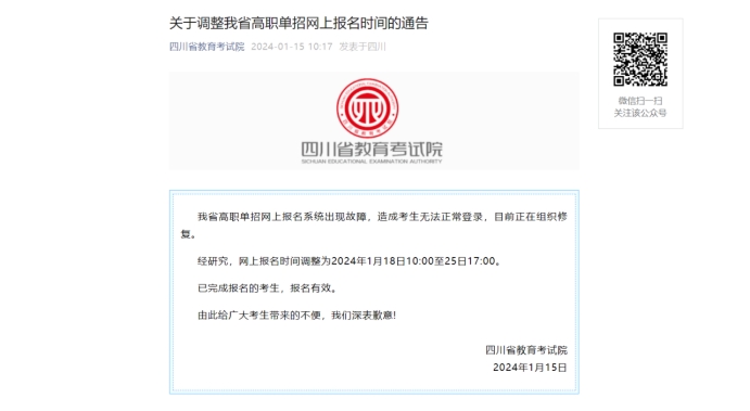 接到四川省教育考试院通知,现将单招考试报名时间调整通知发布到KY开元集团官网教务处官网,请各位考生查收。