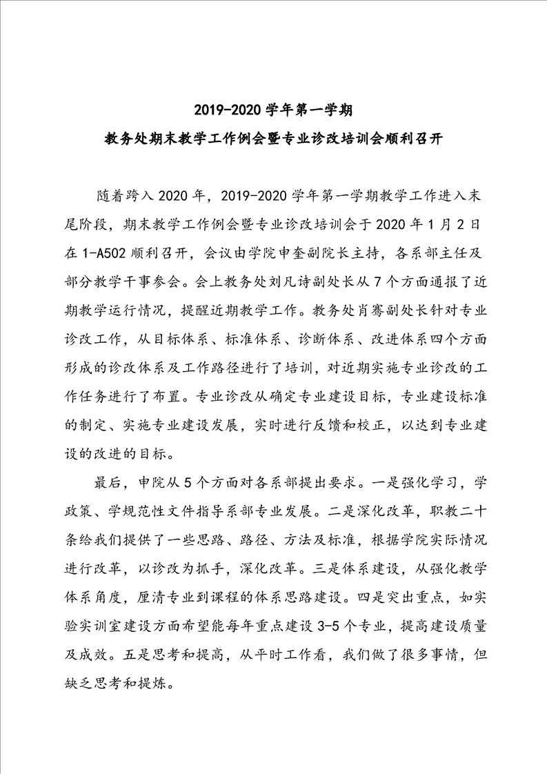 2019-2020学年第一学期 教务处期末教学工作例会暨专业诊改培训会顺利召开
