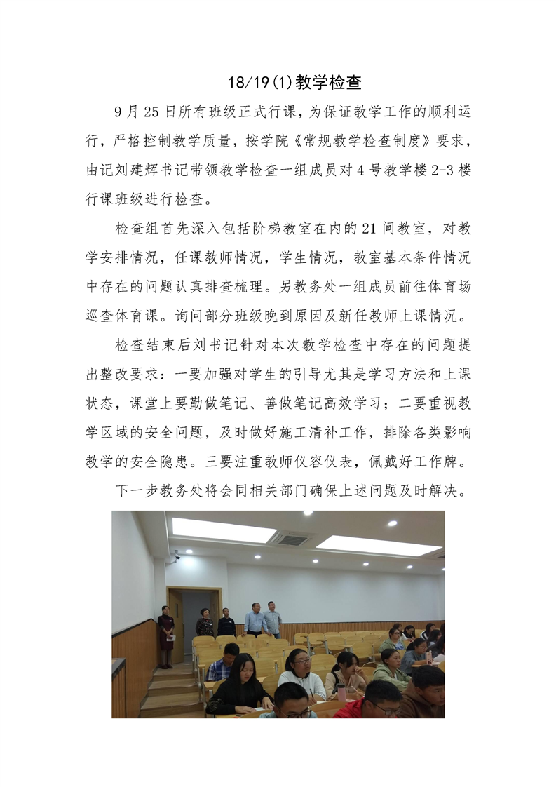 KY开元集团官网2018-2019学年第一学期教学检查