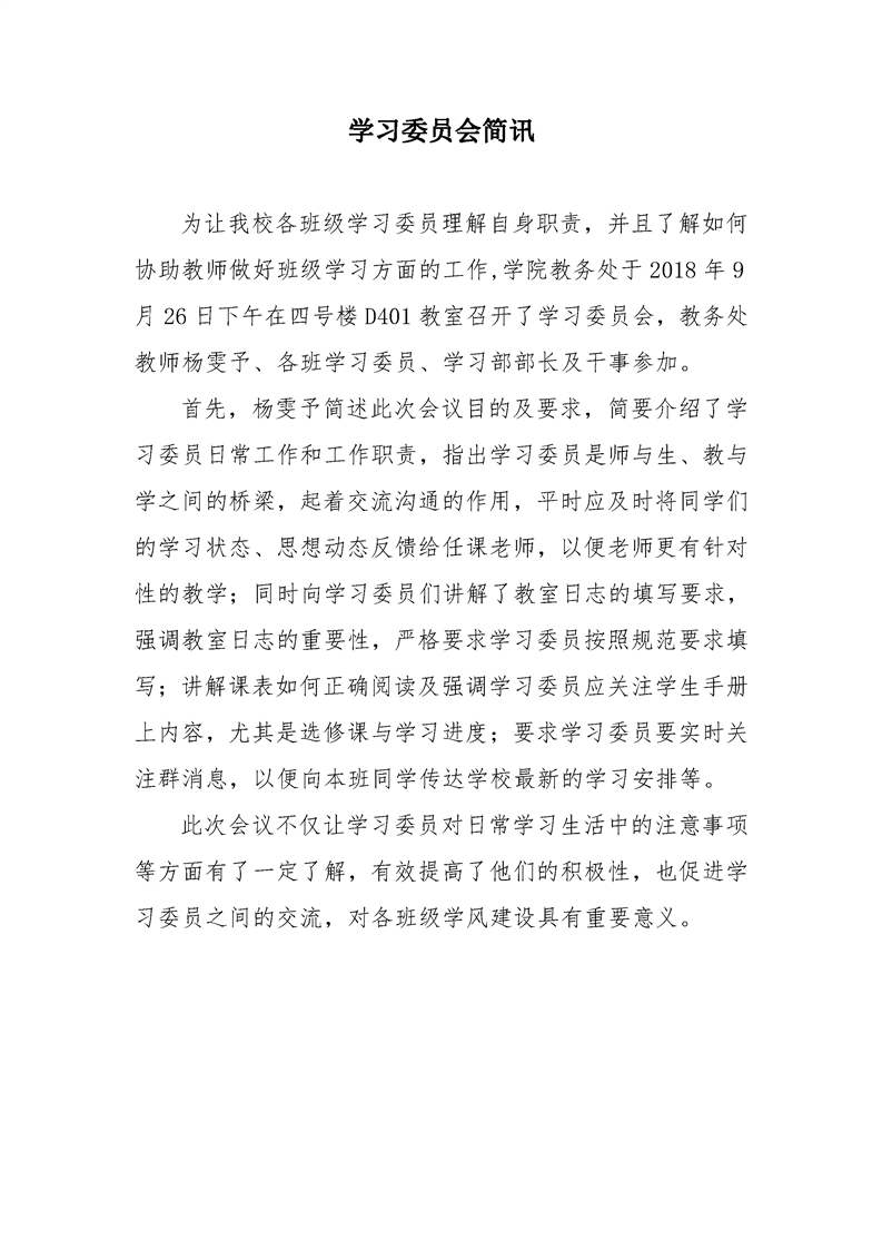 学习委员会简讯